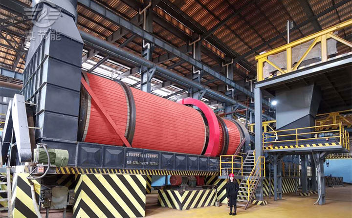 由于市政污泥高濕高粘的特性在烘干過程中容易粘黏在筒壁上,因此在市政污泥干化處理設(shè)備的工作流程中,關(guān)鍵還是防粘黏的設(shè)計,具體干燥過程如下:濕泥由給料裝置送入污泥烘干機(jī)內(nèi)筒中,內(nèi)筒設(shè)置有“旋耙破碎”打散裝置將濕泥不斷打散粉碎,使污泥顆粒隨著筒體轉(zhuǎn)動不斷翻滾、分離。為了避免高濕高粘的市政污泥粘附、結(jié)團(tuán),筒內(nèi)設(shè)置有分布密集的導(dǎo)料揚(yáng)料裝置,在揚(yáng)料板的高速擺動下,物料逐漸灑落并均勻充滿整個干燥空間。此時,熱氣流與濕污泥密切接觸,充分進(jìn)行熱交換,加快物料表面水分的蒸發(fā),形成不粘不黏的散狀后被送入到中筒。中筒采用了逆流干燥技術(shù),熱風(fēng)與濕泥逆筒而向,使污泥內(nèi)部的水分進(jìn)一步被蒸發(fā),污泥干燥后變成低水分的松散物料,由出料口排出,烘干過程完成。